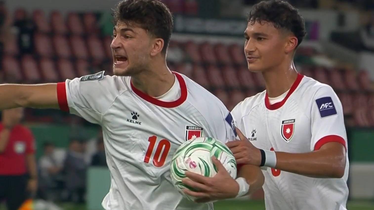 第30分钟,约旦队获得快速反击机会,禁区倒三角回传,赫鲁巴背身做球,阿里-阿赛扎迎球爆射破门,帮助约旦队1-0领先。